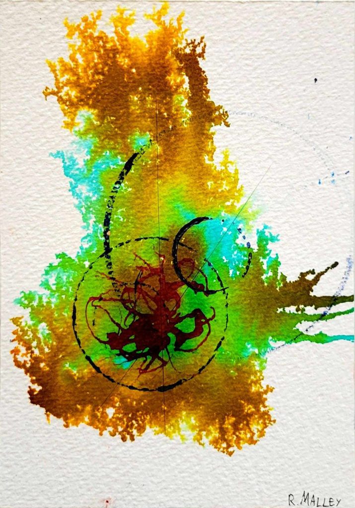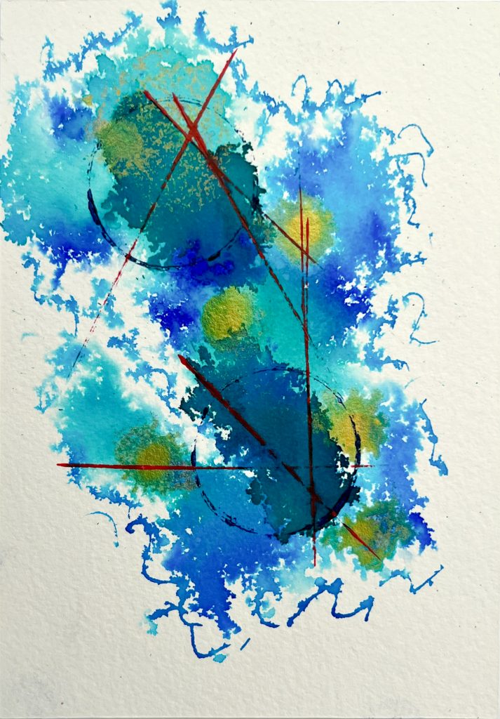 Encres et Lignes n°2, Médium mixtes sur papier, A6, 2025