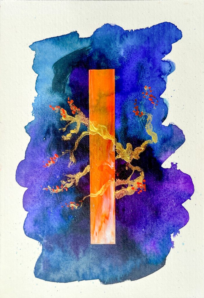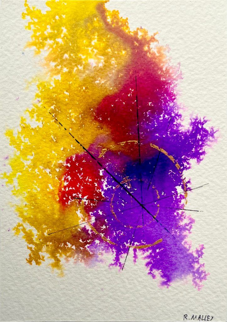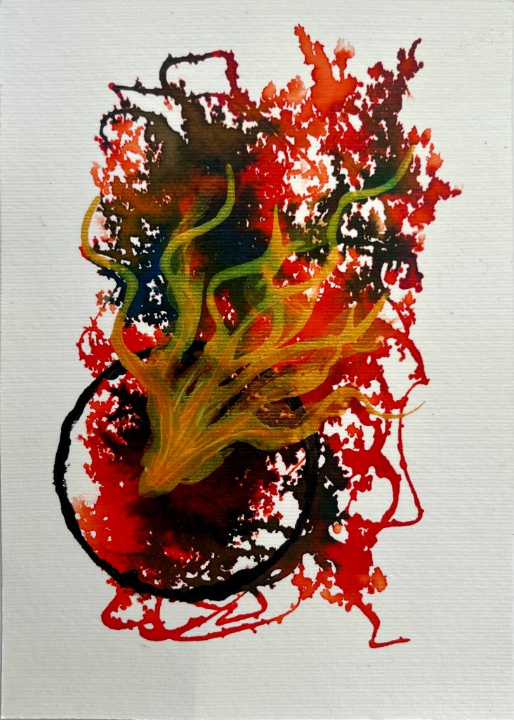 Encres et Lignes n°1, Médium mixtes sur papier, A6, 2025