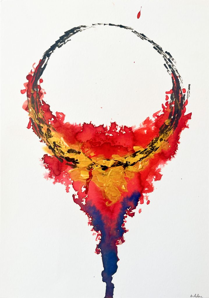 Encres et Lignes n°5, Médium mixtes sur papier, A5, 2025